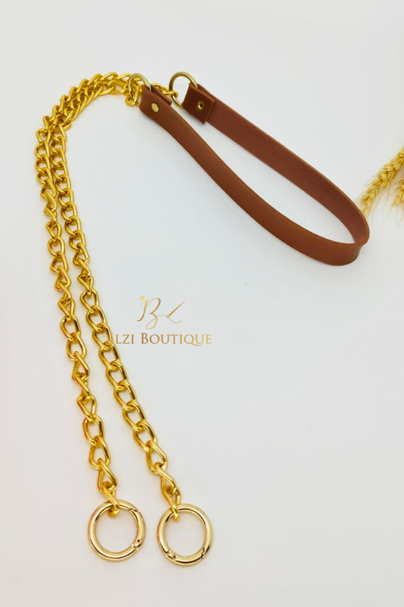 Alça tiracolo de corrente dourada e sintético montana caramelo