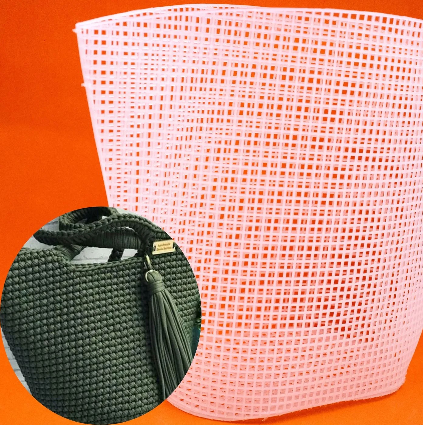 Tela Plástica Branca para estruturar bolsas em crochê.